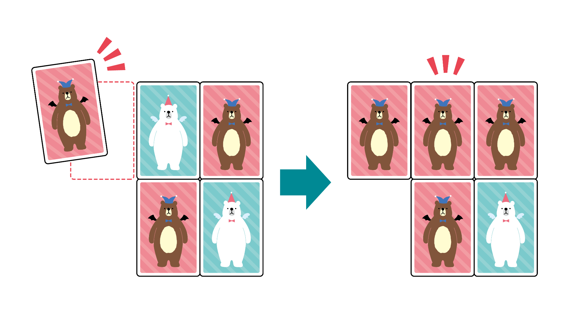 3. The first player places their card at the location (vertically, horizontally or diagonally) where the opponent's card can be inserted. Turn over the sandwiched card.